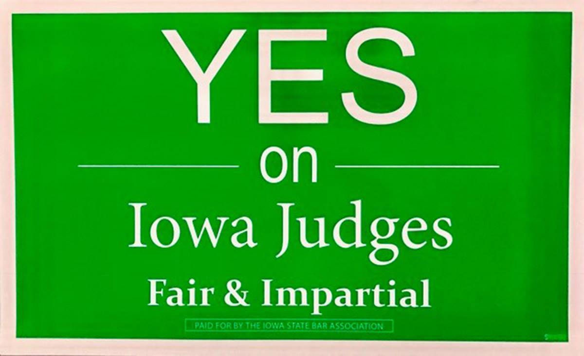 The Iowa State Bar Association created a “Judicial Facts” website to support the merit selection system and spent thousands of dollars on social media, yard signs, and radio ads advocating yes votes on all judges.