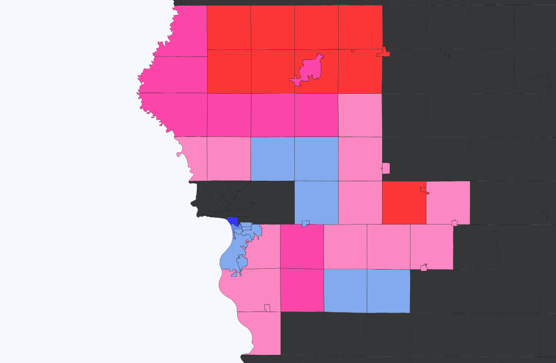 What’s most embarrassing for Iowa Republicans is Jim Carlin’s performance in his own statehouse district. Just 13 months ago, Carlin won an open seat here with 65% of the vote against a relatively well funded Democratic candidate. On Tuesday, Carlin received just 48% of the vote in his home district. This represents a nearly 18% shift leftward from the 2016 legislative results.