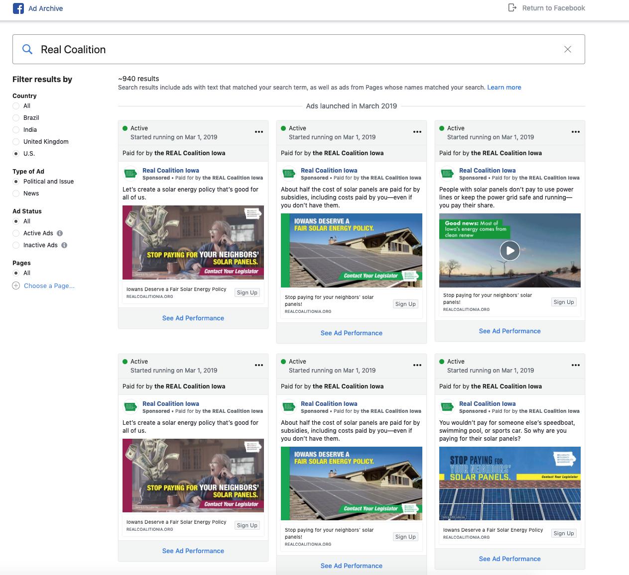 Real Coalition Facebook ad archive: